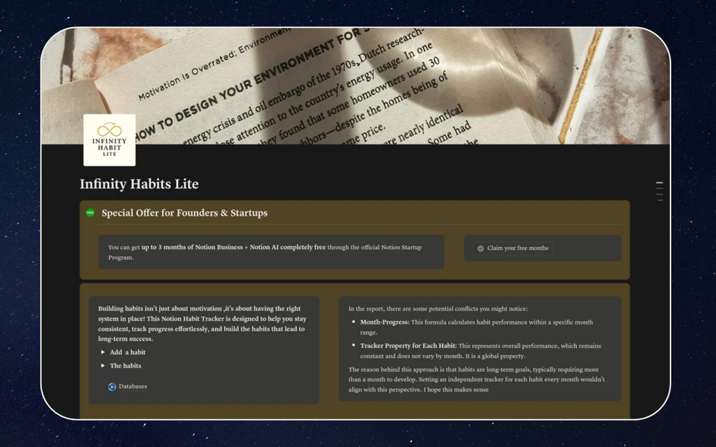 Building good habits isn’t just about motivation, it’s about having a simple, reliable system that makes consistency easier. Infinity Habit Lite gives you exactly that. A clean, lightweight habit tracker that helps you show up every day without feeling overwhelmed.