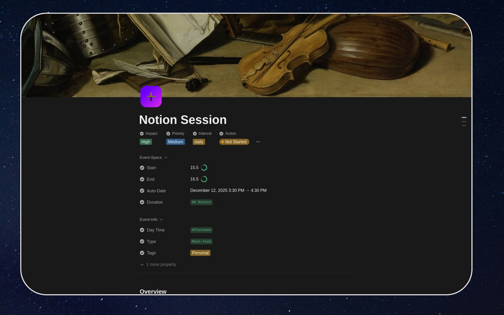 It is engineered to cover every type of activity you may do in your daily life — work sessions, study blocks, errands, self-care, reading, practice, calls, life admin, and more.