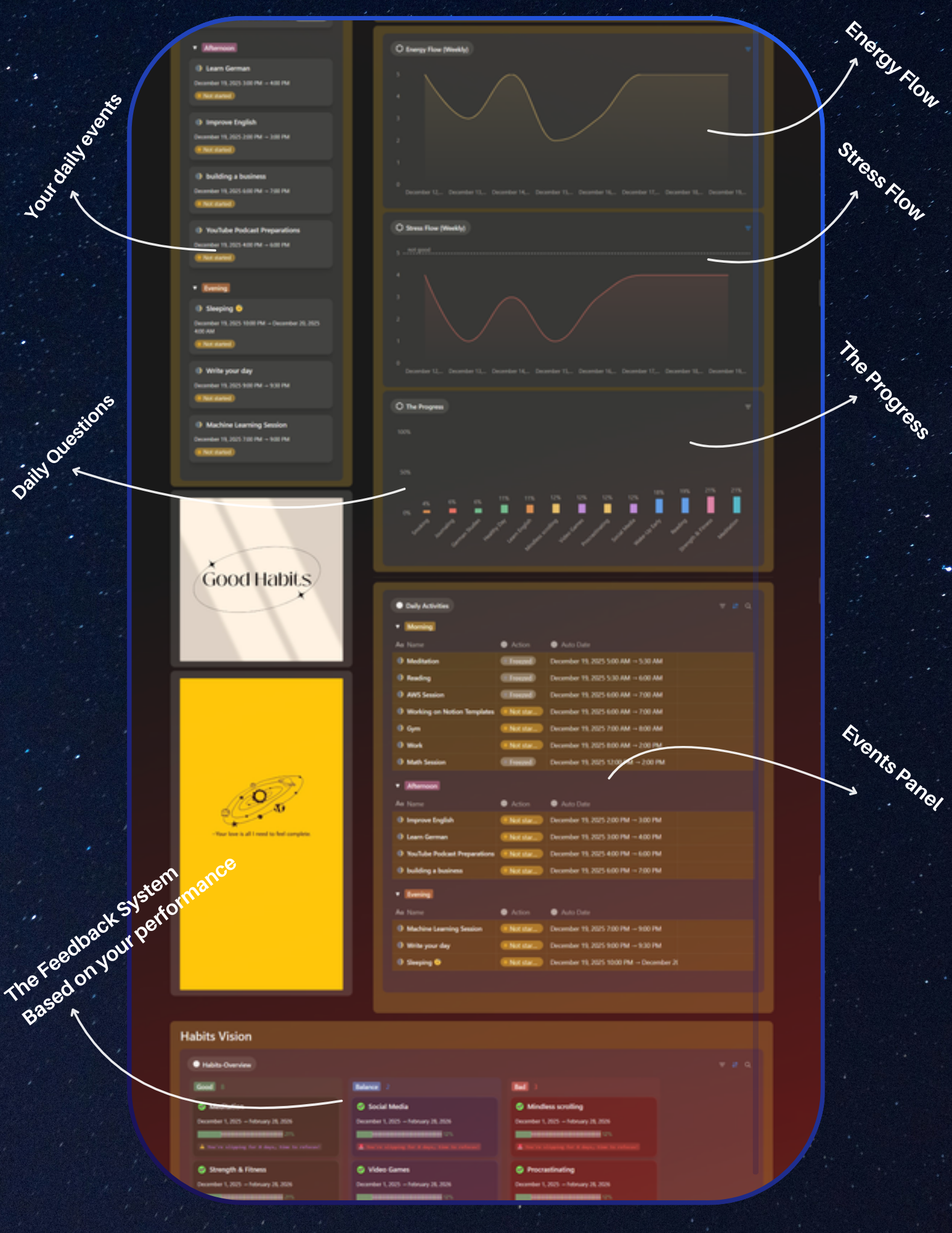 This system is designed to track both good and bad habits, giving you full awareness and control of your daily behavior. It currently supports: